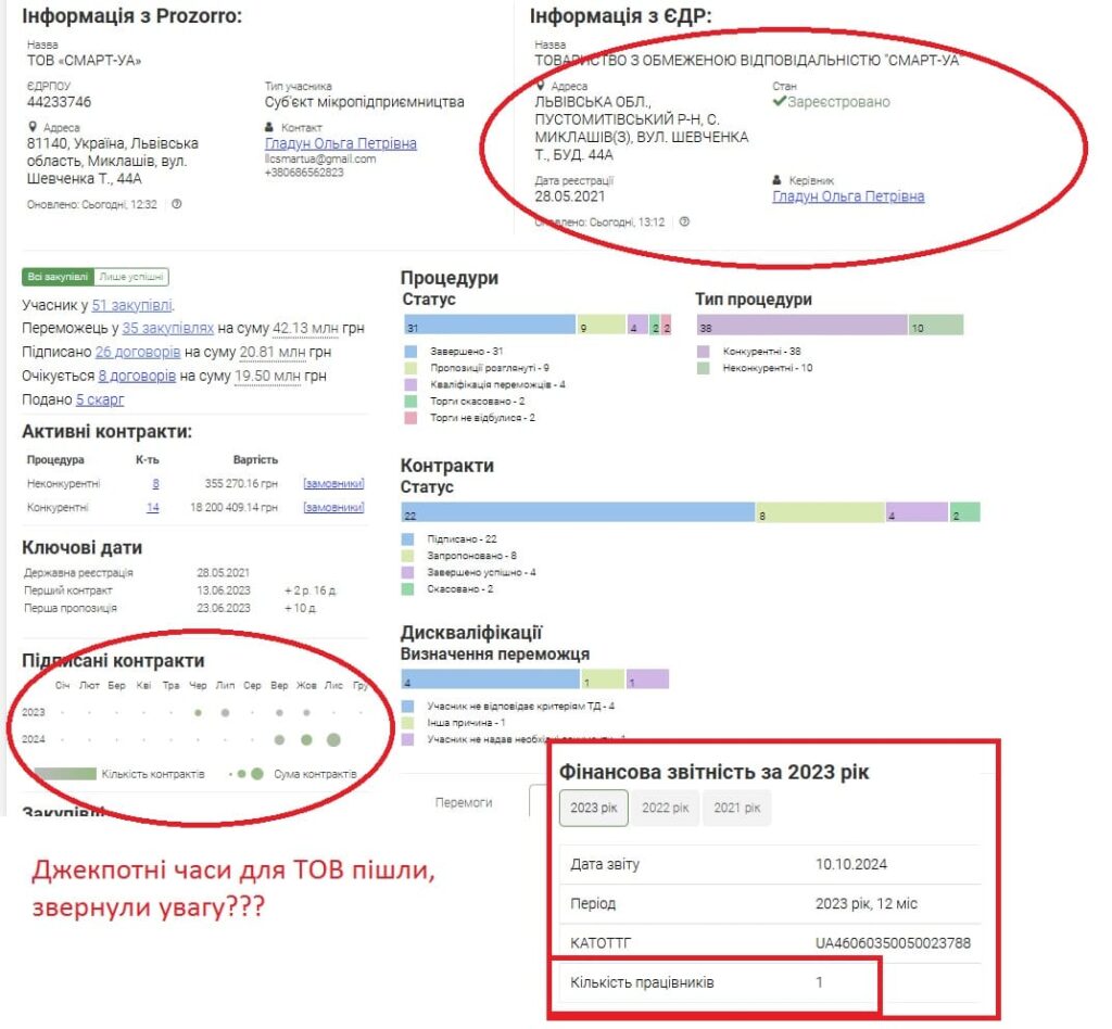 ТОВка зареєстрована в селі на Львівщині, має одну людину (жіночку 68 року народження)…. Але у неї дуже крута мережа співпраці. Така собі міжнародна дилерська контора. В одній людині.