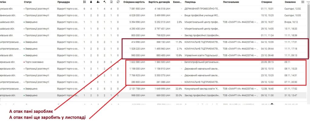 Пані Гладун в листопаді отримала наступні контракти (ой, перепрошуємо, ТОВ “Смарт-УА”):
