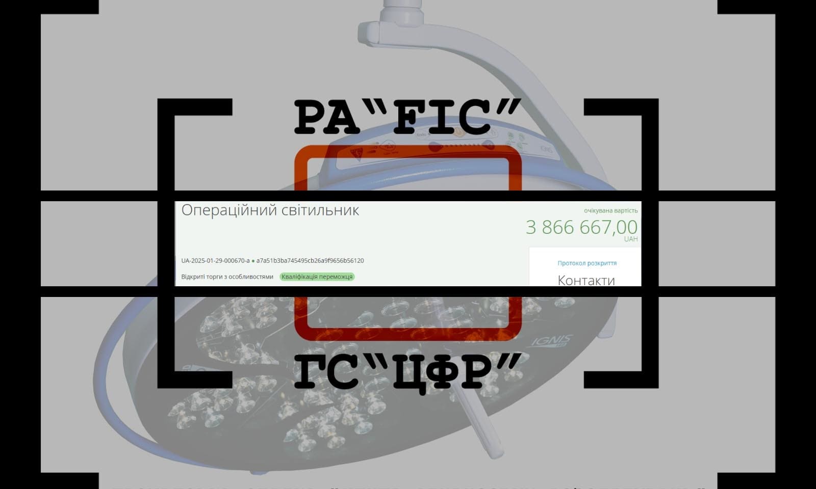6 лютого Комунальне підприємство “Кременчуцький обласний онкологічний диспансер Полтавської обласної ради” провів закупівлю на операційні світильники.