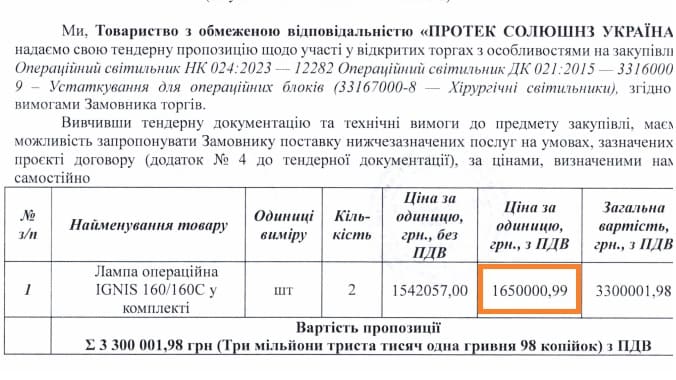 На торгах переміг ТОВ “ПРОТЕК СОЛЮШНЗ УКРАЇНА” з пропозицією у 3 300 001,98 гривні. ТОВ пропонує моделі ignis 160/160C.