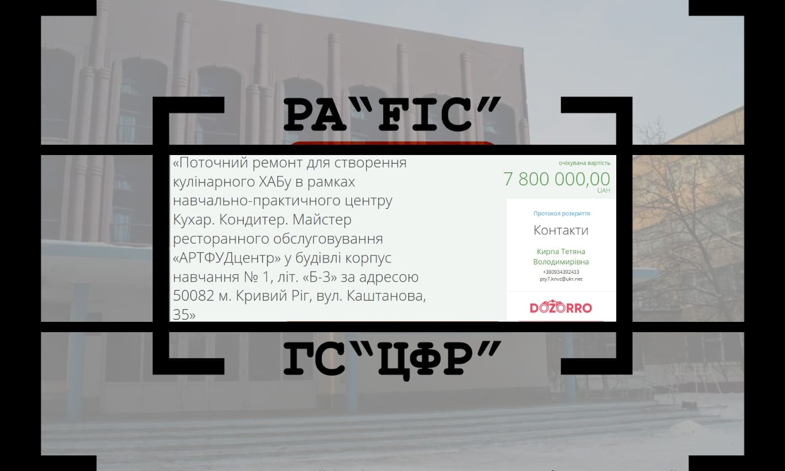 5 вересня Державний професійно-технічний навчальний заклад “Криворізький навчально-виробничий центр” провів закупівлю на поточний ремонт для створення кулінарного ХАБу в рамках навчально-практичного центру Кухар. Кондитер. Майстер ресторанного обслуговування “АРТФУДцентр” у будівлі корпус навчання № 1, літ. “Б-3”.