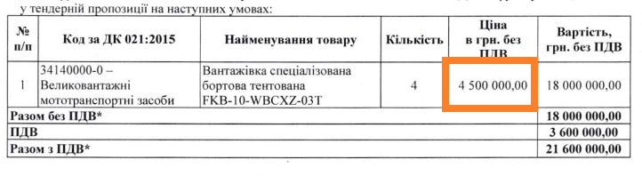 23 квітня УПРАВЛІННЯ ЖИТЛОВО-КОМУНАЛЬНОГО ГОСПОДАРСТВА, БЛАГОУСТРОЮ ТА КАПІТАЛЬНОГО БУДІВНИЦТВА КУП’ЯНСЬКОЇ МІСЬКОЇ РАДИ ХАРКІВСЬКОЇ ОБЛАСТІ провело закупівлю на 4 вантажівки спеціалізовані бортові тентовані, очікуваною вартістю 22 680 000 гривень (місцевий бюджет).