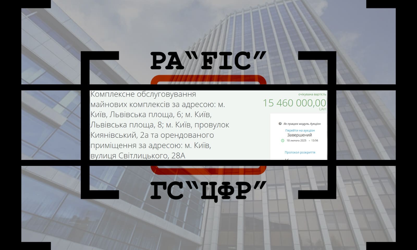 18 лютого Державна податкова служба України провела закупівлю на комплексне обслуговування майнових комплексів за адресою: м. Київ, Львівська площа, 6; м. Київ, Львівська площа, 8; м. Київ, провулок Киянівський, 2а та орендованого приміщення за адресою: м. Київ, вулиця Світлицького, 28А.
