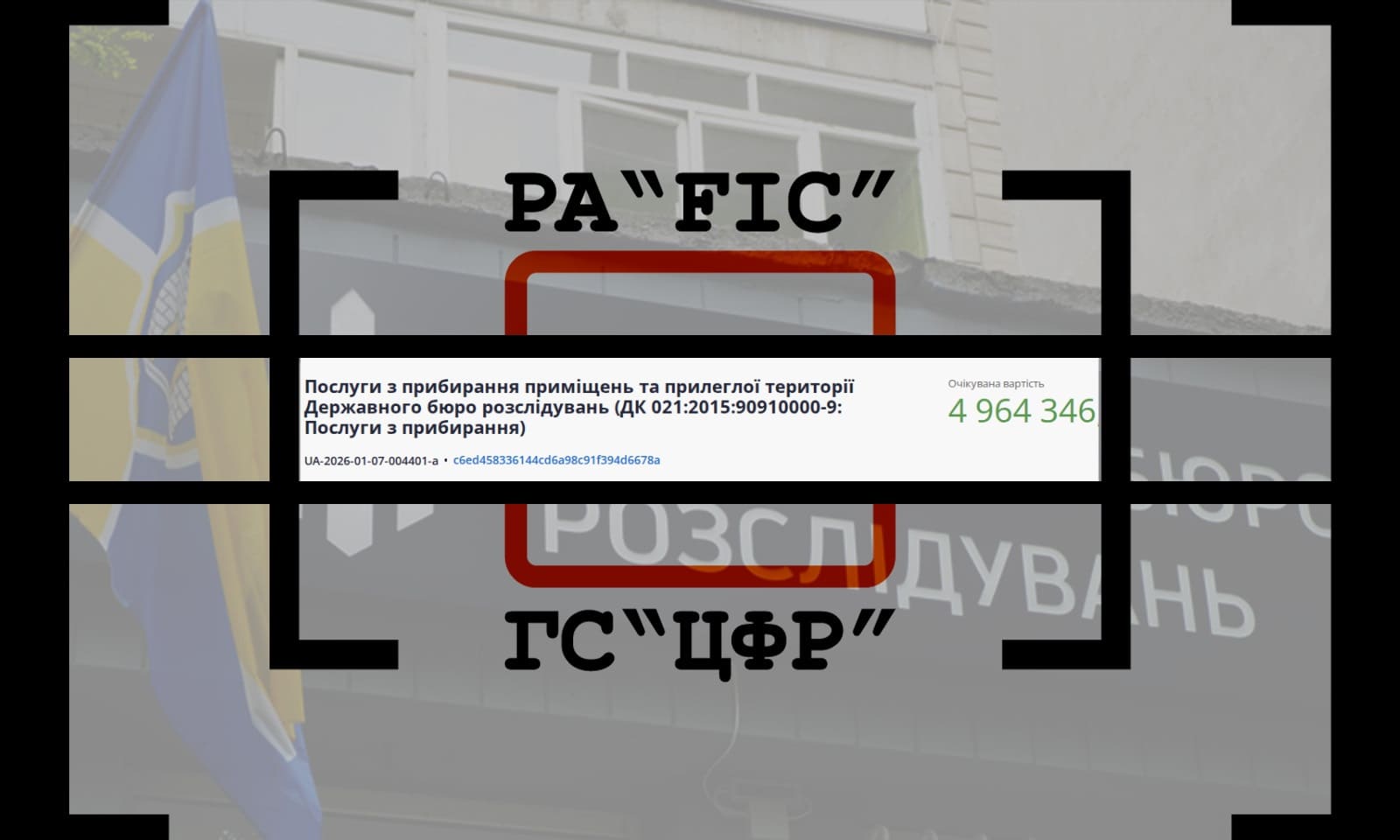 15 січня ДЕРЖАВНЕ БЮРО РОЗСЛІДУВАНЬ провело закупівлю на послуги з прибирання приміщень та прилеглої території Державного бюро розслідувань.