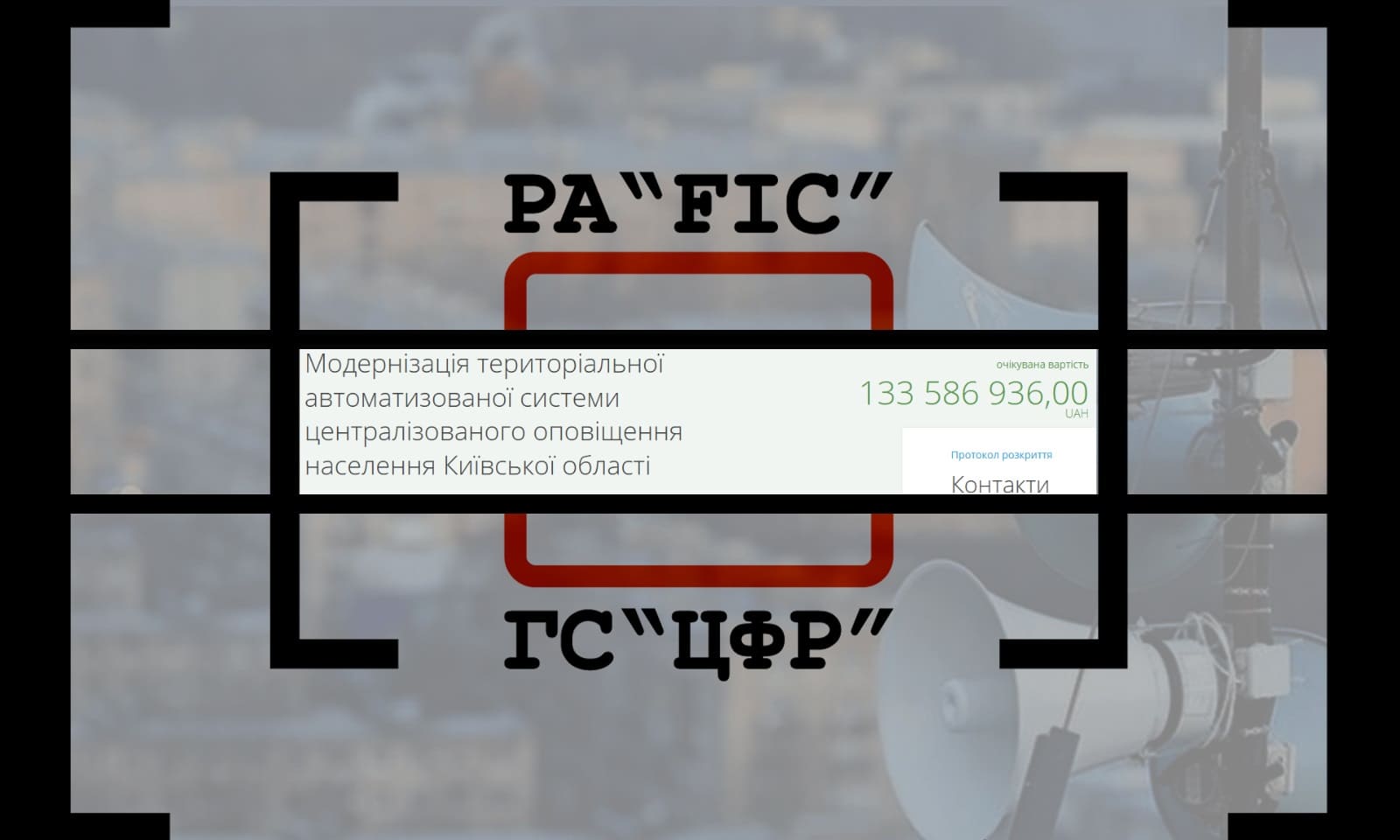 13 вересня ДЕПАРТАМЕНТ ЦИВІЛЬНОГО ЗАХИСТУ ТА ОБОРОННОЇ РОБОТИ КИЇВСЬКОЇ ОБЛАСНОЇ ДЕРЖАВНОЇ АДМІНІСТРАЦІЇ провів закупівлю на модернізацію територіальної автоматизованої системи централізованого оповіщення населення Київської області.
