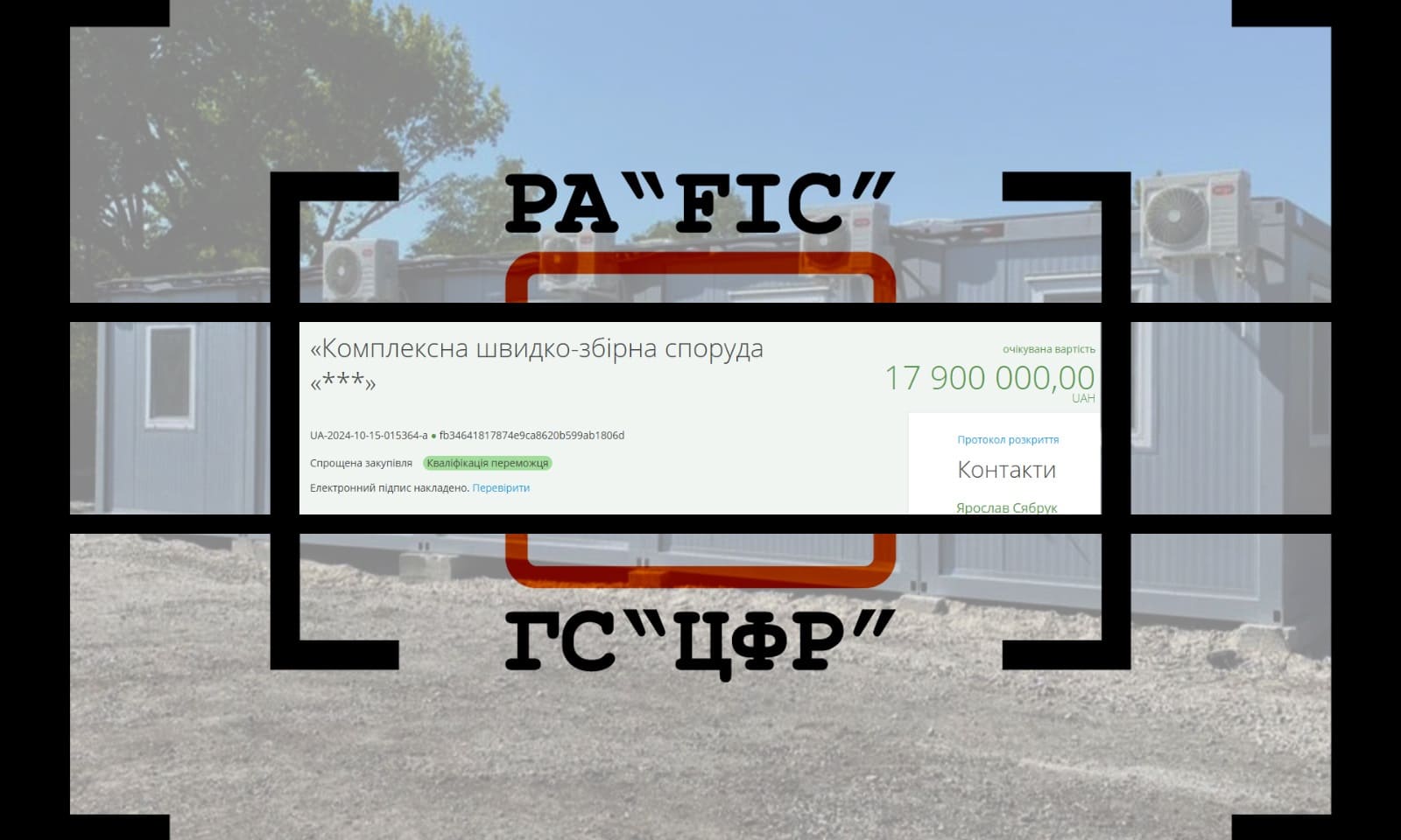 23 жовтня Київський інститут Національної гвардії України провів закупівлю на комплект комплексної швидко-збірної споруди, очікуваною вартістю 17 900 000 гривень.