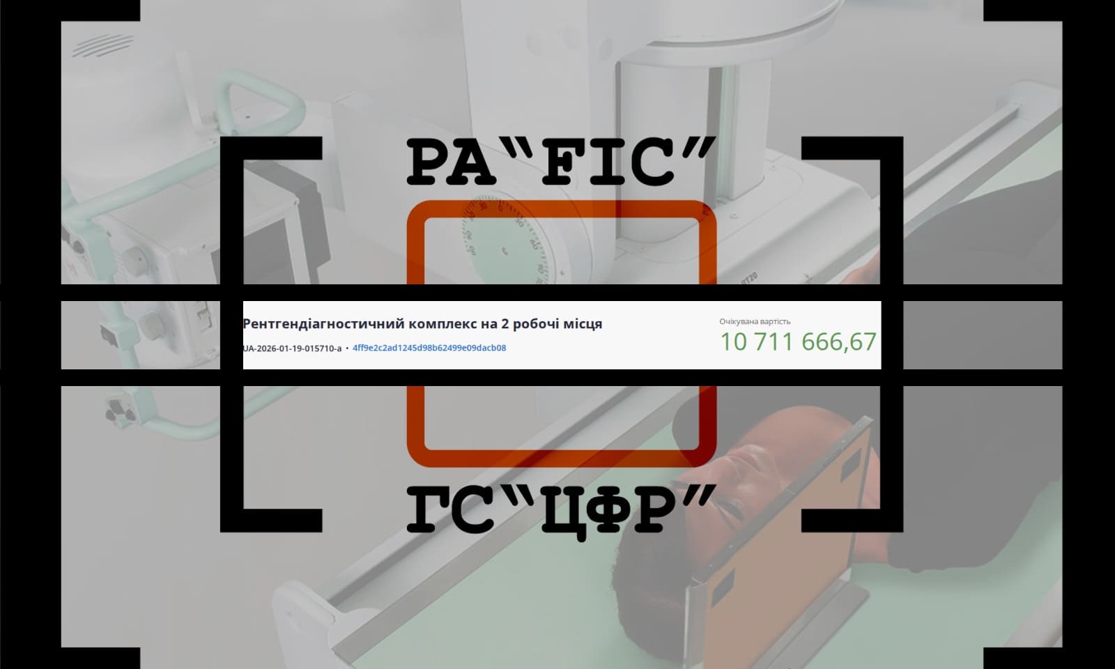 27 січня ЦЕНТРАЛЬНА ПОЛІКЛІНІКА МІНІСТЕРСТВА ВНУТРІШНІХ СПРАВ УКРАЇНИ провела закупівлю на рентгендіагностичний комплекс на 2 робочі місця.