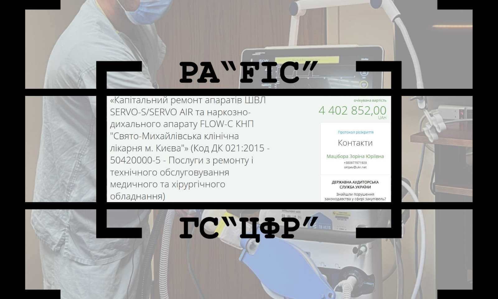 16 грудня Комунальне некомерційне підприємство “Свято-Михайлівська клінічна лікарня м. Києва” виконавчого органу Київської міської ради (Київської міської державної адміністрації) провело закупівлю на капітальний ремонт апаратів ШВЛ SERVO-S/SERVO AIR та наркозно-дихального апарату FLOW-C. Очікувана вартість закупівлі склала 4 402 852 гривні (місцевий бюджет).