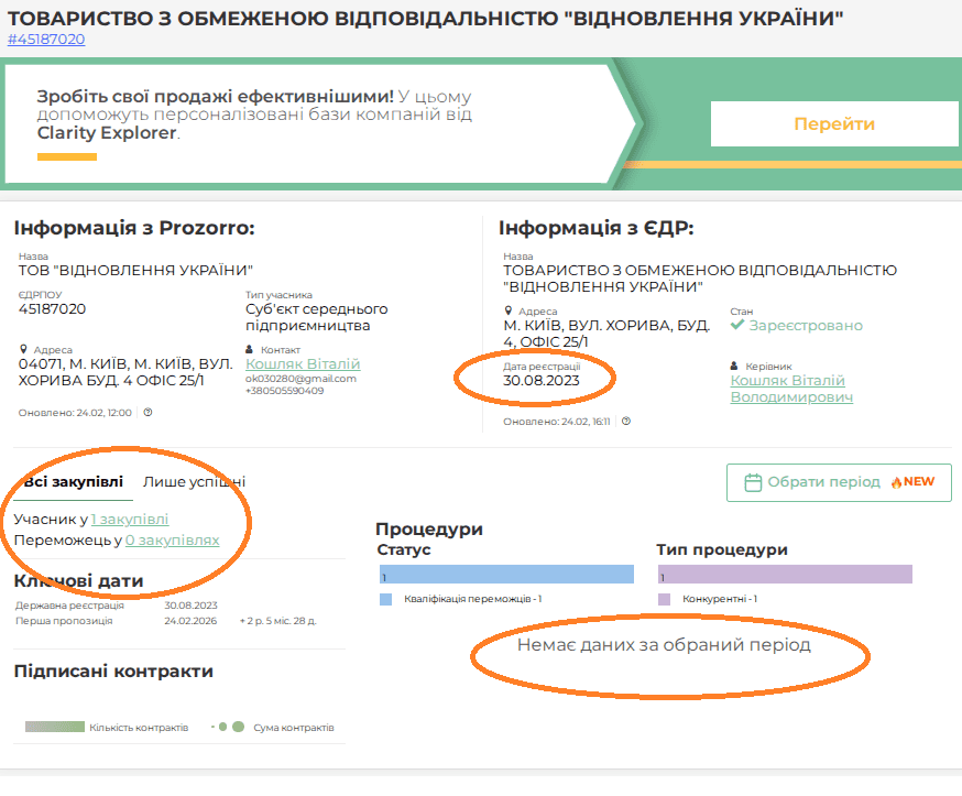 ТОВ створене у 2023 році. Відкриті реєстри показують 3 людей в штаті, 1 000 гривень статутного капіталу та жодних контрактів у Prozorro. Звісно, у поданій документації інформація інша. Добрали людей, заручились контрактами інших підприємств, мають МТБ.
