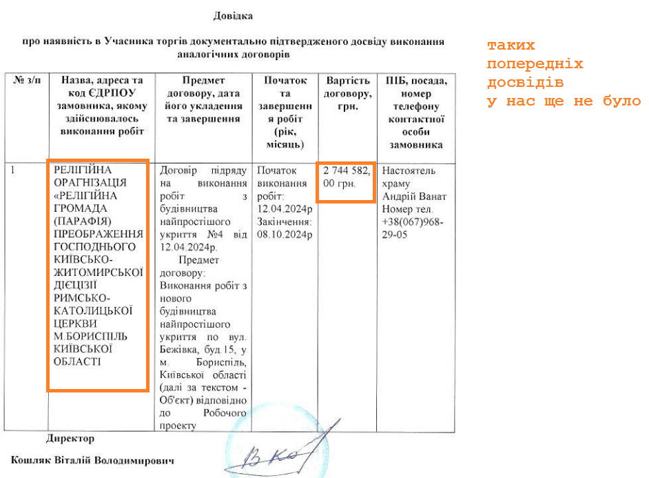 Та що там говорити, мають лист відгук від РЕЛІГІЙНОЇ ОРГАНІЗАЦІЇ «РЕЛІГІЙНА ГРОМАДА (ПАРАФІЯ) ПРЕОБРАЖЕННЯ ГОСПОДНЬОГО КИЇВСЬКО-ЖИТОМИРСЬКОЇ ДІЄЦЕЗІЇ РИМСЬКО-КАТОЛИЦЬКОЇ ЦЕРКВИ М.БОРИСПІЛЬ КИЇВСЬКОЇ ОБЛАСТІ. Не будемо вдаватись у деталі, але будівництво укриття коштувало 2,7 мільйона гривень.