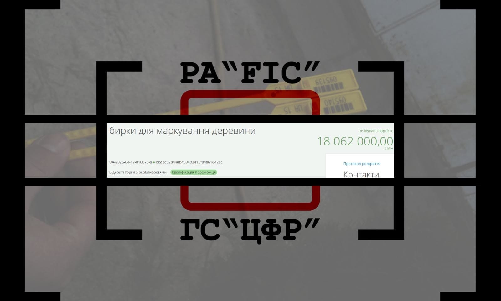 25 квітня ДЕРЖАВНЕ СПЕЦІАЛІЗОВАНЕ ГОСПОДАРСЬКЕ ПІДПРИЄМСТВО “ЛІСИ УКРАЇНИ” провело закупівлю на бирки для маркування деревини за 18 062 000 гривень.