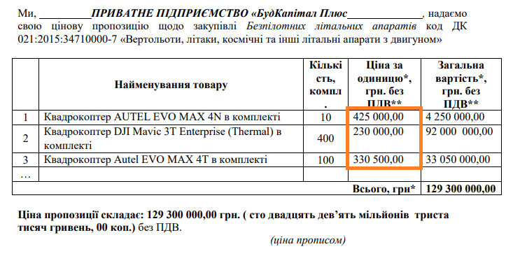 30 квітня Департамент поліції особливого призначення “Об’єднана штурмова бригада Національної поліції України “Лють” провів закупівлю на безпілотні літальні апарати, очікуваною вартістю 129 343 130 гривень.