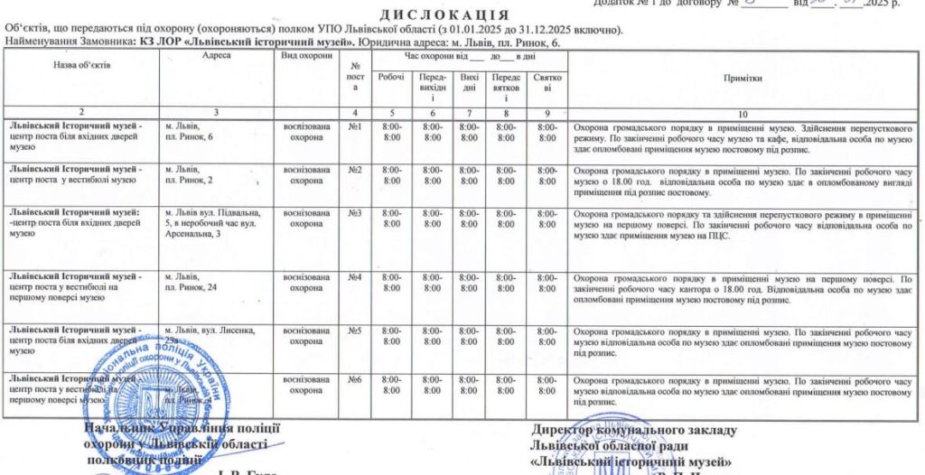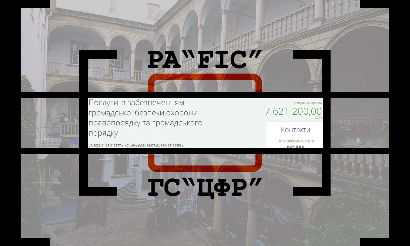 21 січня КОМУНАЛЬНИЙ ЗАКЛАД ЛЬВІВСЬКОЇ ОБЛАСНОЇ РАДИ “ЛЬВІВСЬКИЙ ІСТОРИЧНИЙ МУЗЕЙ” провів закупівлю без тендера на послуги із забезпеченням громадської безпеки, охорони правопорядку та громадського порядку.