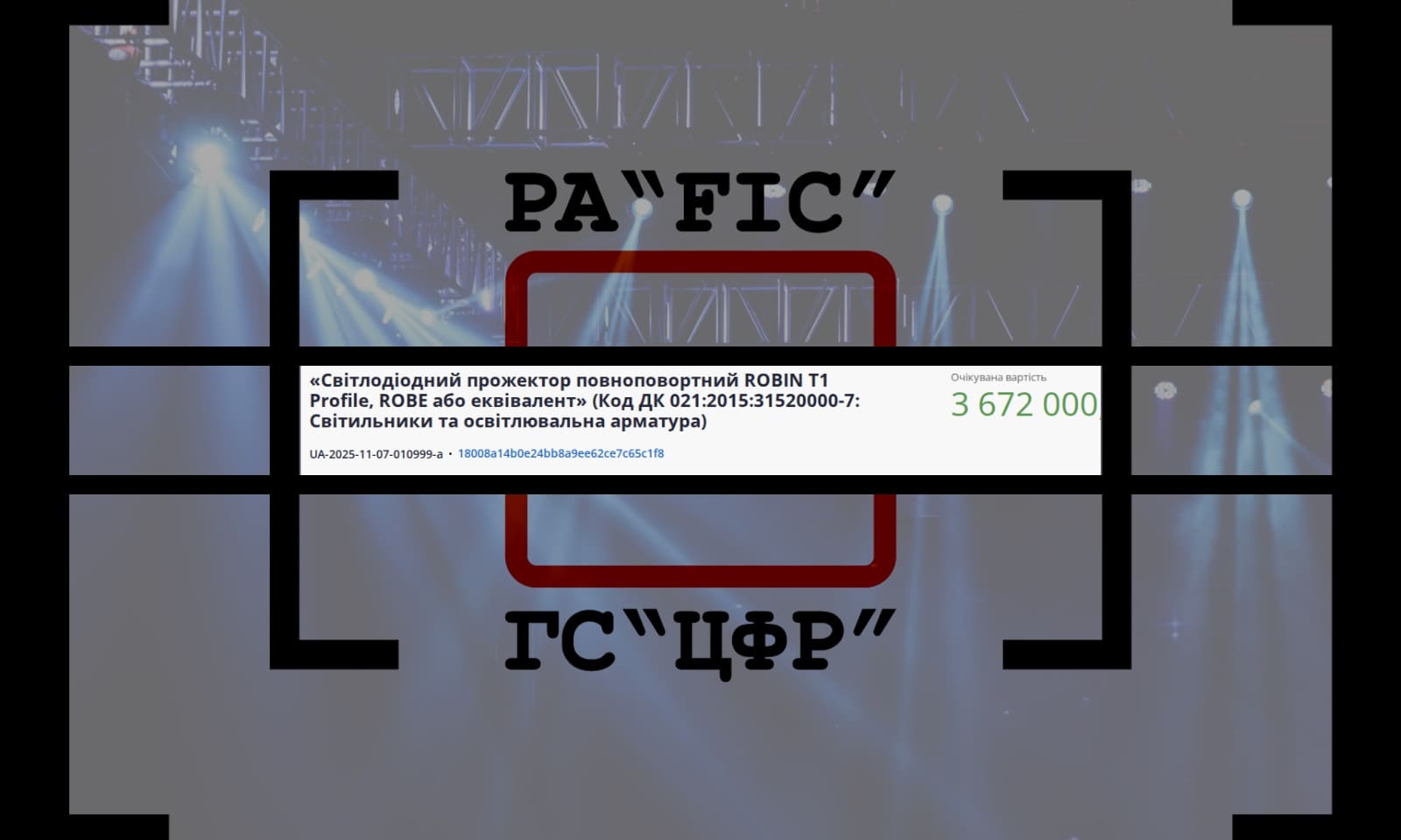15 листопада ЛЬВІВСЬКИЙ НАЦІОНАЛЬНИЙ АКАДЕМІЧНИЙ ТЕАТР ОПЕРИ ТА БАЛЕТУ ІМЕНІ СОЛОМІЇ КРУШЕЛЬНИЦЬКОЇ провів закупівлю на світлодіодні прожектори повноповортні ROBIN T1 Profile, ROBE або еквівалент. Шість таких прожекторів оцінили у 3 672 000 гривень (місцевий бюджет).