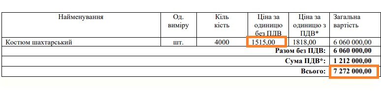 23 вересня Державне підприємство “Львіввугілля” провело закупівлю на 4000 шахтарських костюмів за 6 100 000 гривень.