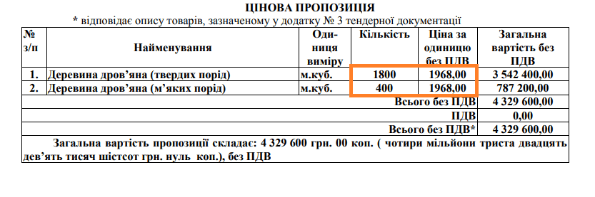 На 1800 метрів кубічних твердих порід та 400 метрів кубічних деревини м’яких порід.