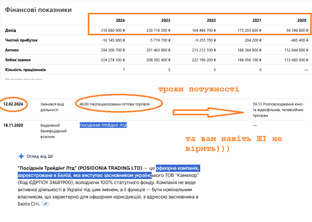 У 2020 році мала в засновниках компанію “Посідонія Трейдінг Лтд”, і навіть ШІ без зайвих коливань називає її офшорною компанією на Белізі з номінальною функцією.