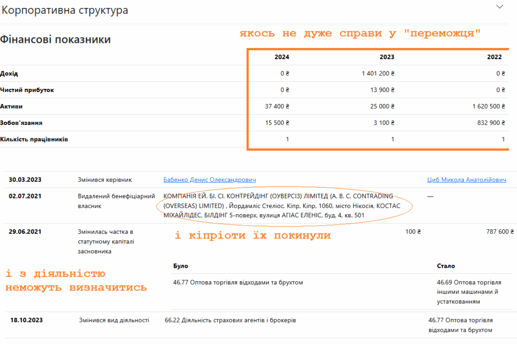 У 2021 році, після вливань у 787 тисяч гривень, з засновників виходить КОМПАНІЯ ЕЙ. БІ. СІ. КОНТРЕЙДІНГ (ОУВЕРСІЗ) ЛІМІТЕД (A. B. C. CONTRADING (OVERSEAS) LIMITED). До речі, станом на сьогодні, директором кіпрської компанії є Вікторія Плішко.
