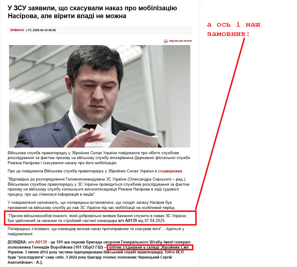 І це всерівно не зіпсує репутацію ВЧ, адже наш замовник – та сама військова частина, в яку зібрався втекти від правосуддя Роман Насіров.