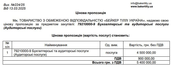На торгах змагались два учасники, дешевшу пропозицію від ТОВ “ЕЙЧ ЕЛ БІ ЮКРЕЙН”. Зараз на можливий контракт очікує ТОВ “БЕЙКЕР ТІЛЛІ УКРАЇНА” за 4 500 000 гривень.