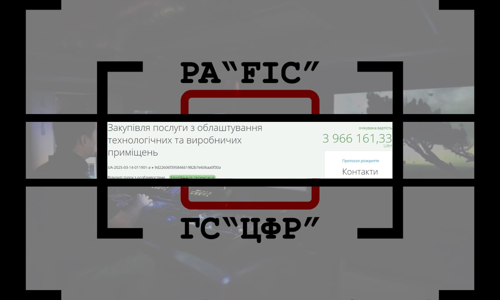 22 березня Державне підприємство “Мультимедійна платформа іномовлення України” провело закупівлю на послуги з облаштування технологічних та виробничих приміщень, очікуваною вартістю у 3 966 161,33 гривні (державний бюджет).
