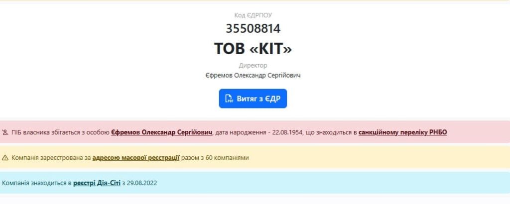ТОВ існує з 2007 року. Має 130 договорів на 271 мільйон гривень. Може бути пов’язаним з Олександром Єфремовим (інформація з порталу opendatabot).