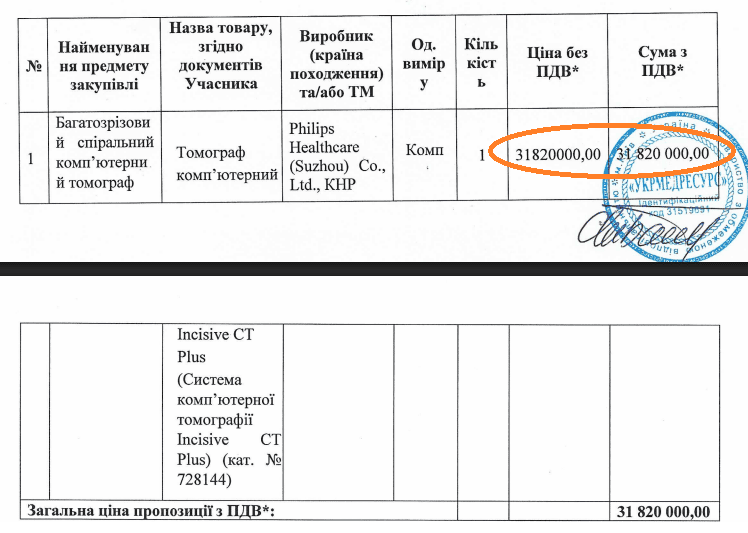 На торгах переміг єдиний учасник, ТОВ “Укрмедресурс” з пропозицією у 31 820 000 гривень.