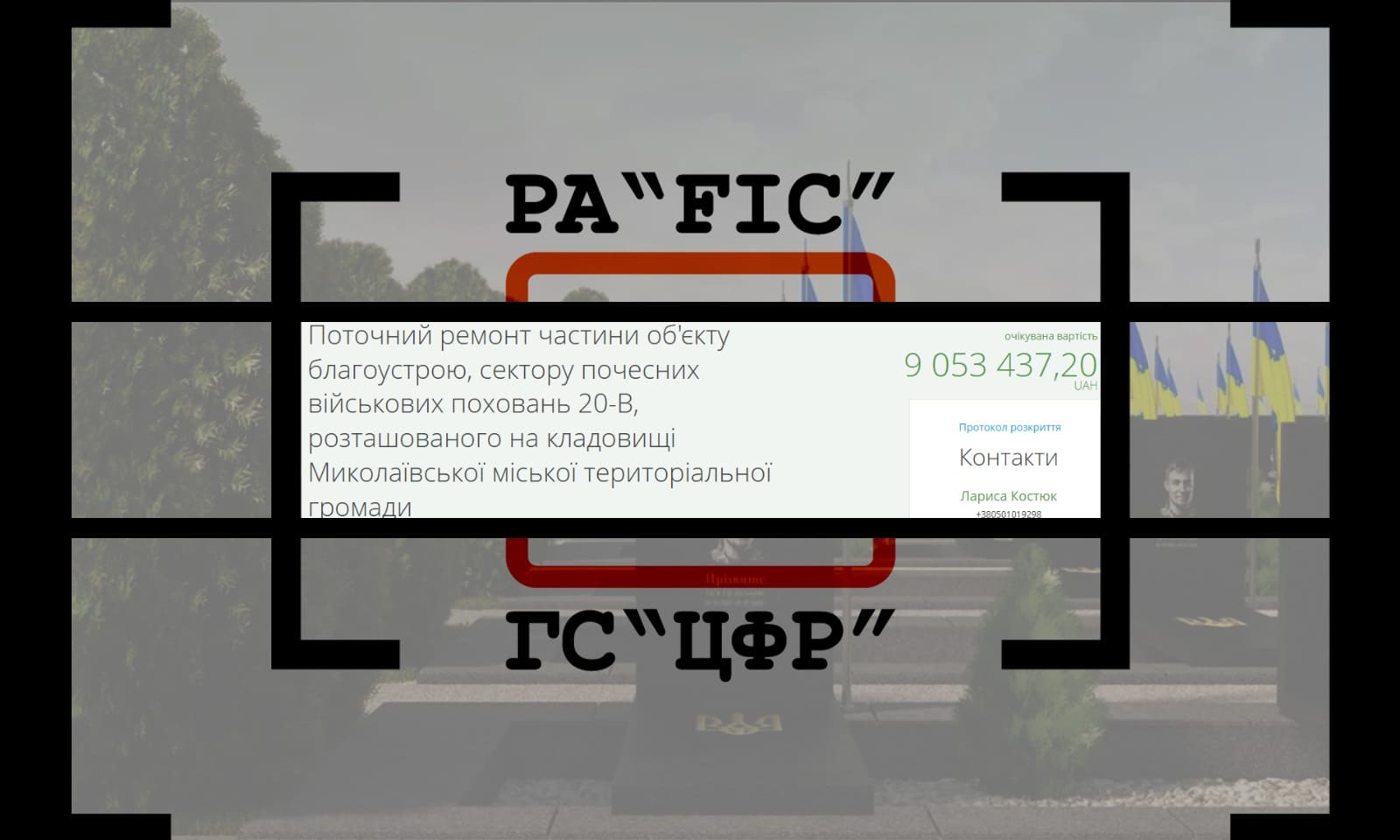 6 вересня КОМУНАЛЬНЕ ПІДПРИЄМСТВО МИКОЛАЇВСЬКОЇ МІСЬКОЇ РАДИ “МИКОЛАЇВСЬКА РИТУАЛЬНА СЛУЖБА” провело закупівлю на поточний ремонт частини об’єкту благоустрою, сектору почесних військових поховань 20-В, розташованого на кладовищі Миколаївської міської територіальної громади.