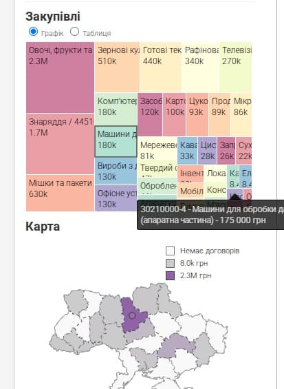 ФОП має 124 договори на 7 мільйонів гривень. Основні контракти отримав у 2022-2024 роках. ФОП реалізовує на Prozorro необмежену номенклатуру товарів: від овочів та фруктів до мобільних телефонів.