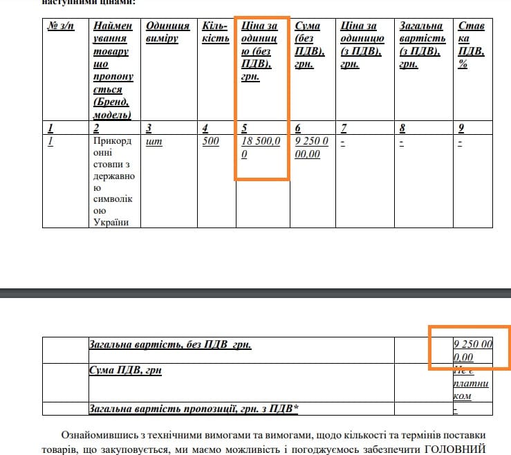 13 лютого ГОЛОВНИЙ ЦЕНТР КАПІТАЛЬНОГО БУДІВНИЦТВА, РЕКОНСТРУКЦІЇ ТА ЗАКУПІВЕЛЬ ДЕРЖАВНОЇ ПРИКОРДОННОЇ СЛУЖБИ УКРАЇНИ провів закупівлю на прикордонні стовпи з державною символікою України.