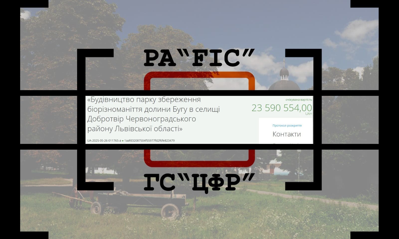 28 липня Добротвірська селищна рада Шептицького району Львівської області провела закупівлю на будівництво парку збереження біорізноманіття долини Бугу в селищі Добротвір Червоноградського району Львівської області.