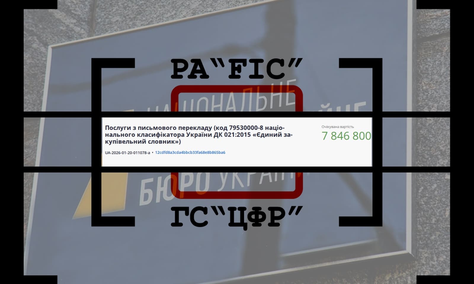 30 січня НАЦІОНАЛЬНЕ АНТИКОРУПЦІЙНЕ БЮРО УКРАЇНИ провело закупівлю на послуги з письмового перекладу, очікуваною вартістю у 7 846 800 гривень.