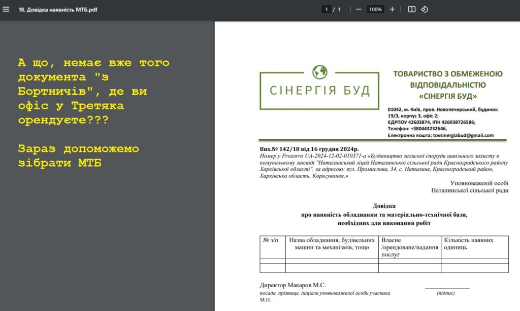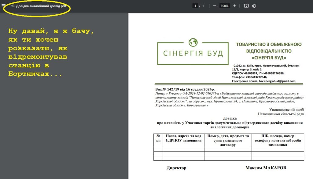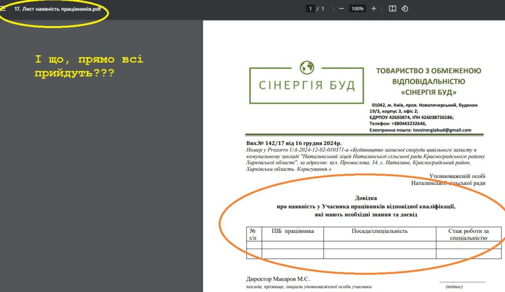 “Сінергія” виграла тендер з пустими документами! Саме так: пусті поля в документах про аналогічний досвід, штат, матеріально-технічну базу! Уявляєте, так можна було?!!!