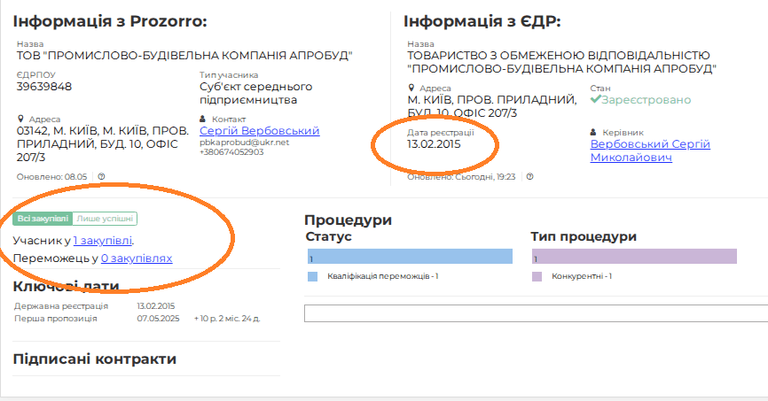 ТОВ існує з 2015 року, але досі контрактів у Prozorro цей учасник досі не мав.
