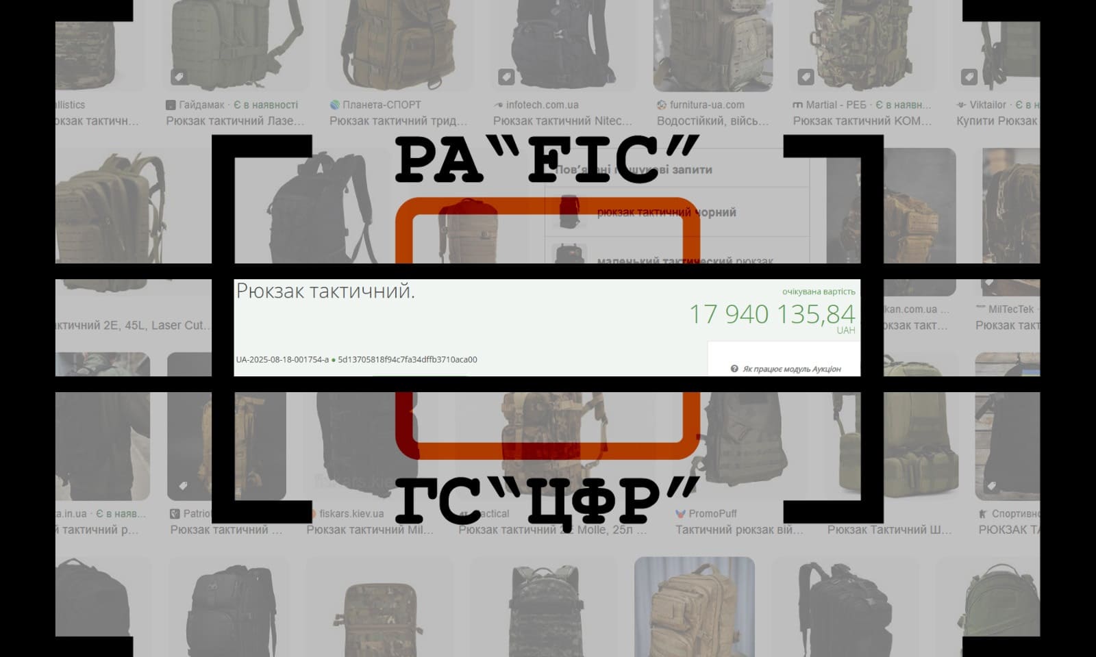 29 серпня Національна поліція України провела закупівлю на тактичні рюкзаки (1958 комплектів), бюджетом у 17 940 135,84 гривні.