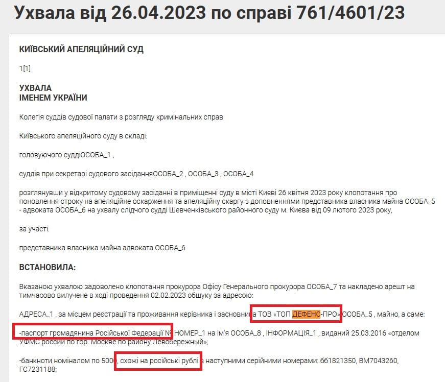 У лютому 2023 року в директора ТОВу, під час обшуку, був знайдений паспорт громадянина рф та валюта країни агресора.