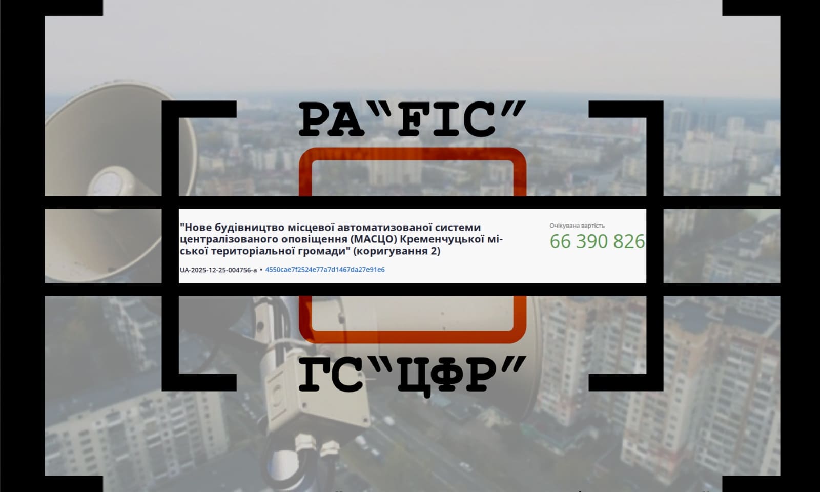 12 січня Департамент з питань цивільного захисту та оборонної роботи Кременчуцької міської ради Кременчуцького району Полтавської області провів закупівлю на нове будівництво місцевої автоматизованої системи централізованого оповіщення (МАСЦО) Кременчуцької міської територіальної громади” (коригування 2).
