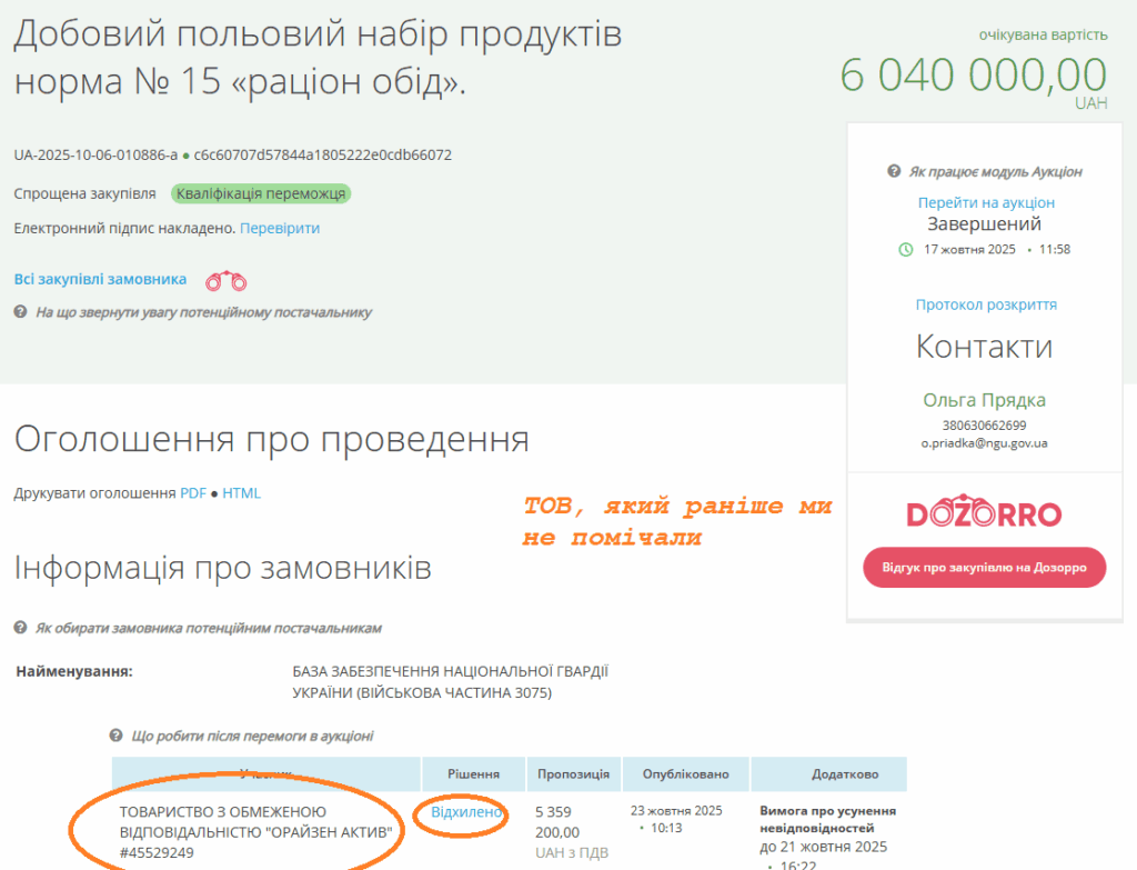 Нові зірки тендерів на сухпаї: ТОВ “ОРАЙЗЕН АКТИВ”