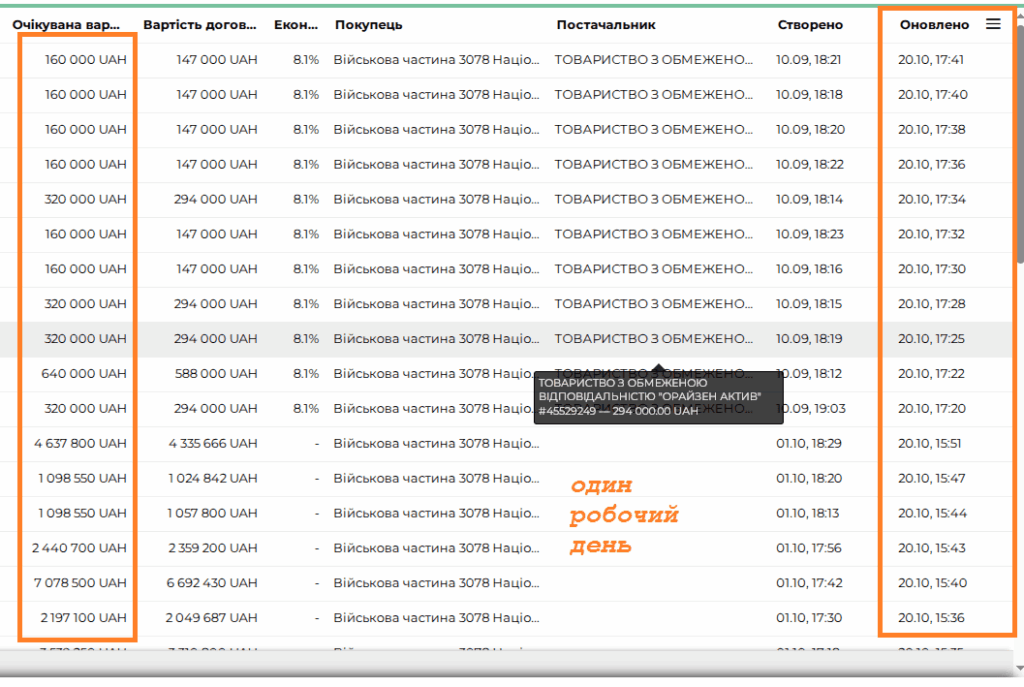 У всіх випадках лідирував один і той же ТОВ, тому ми вирішили почекати, чи його “законтрактують”. У більшості випадків ТОВ таки відхилили.