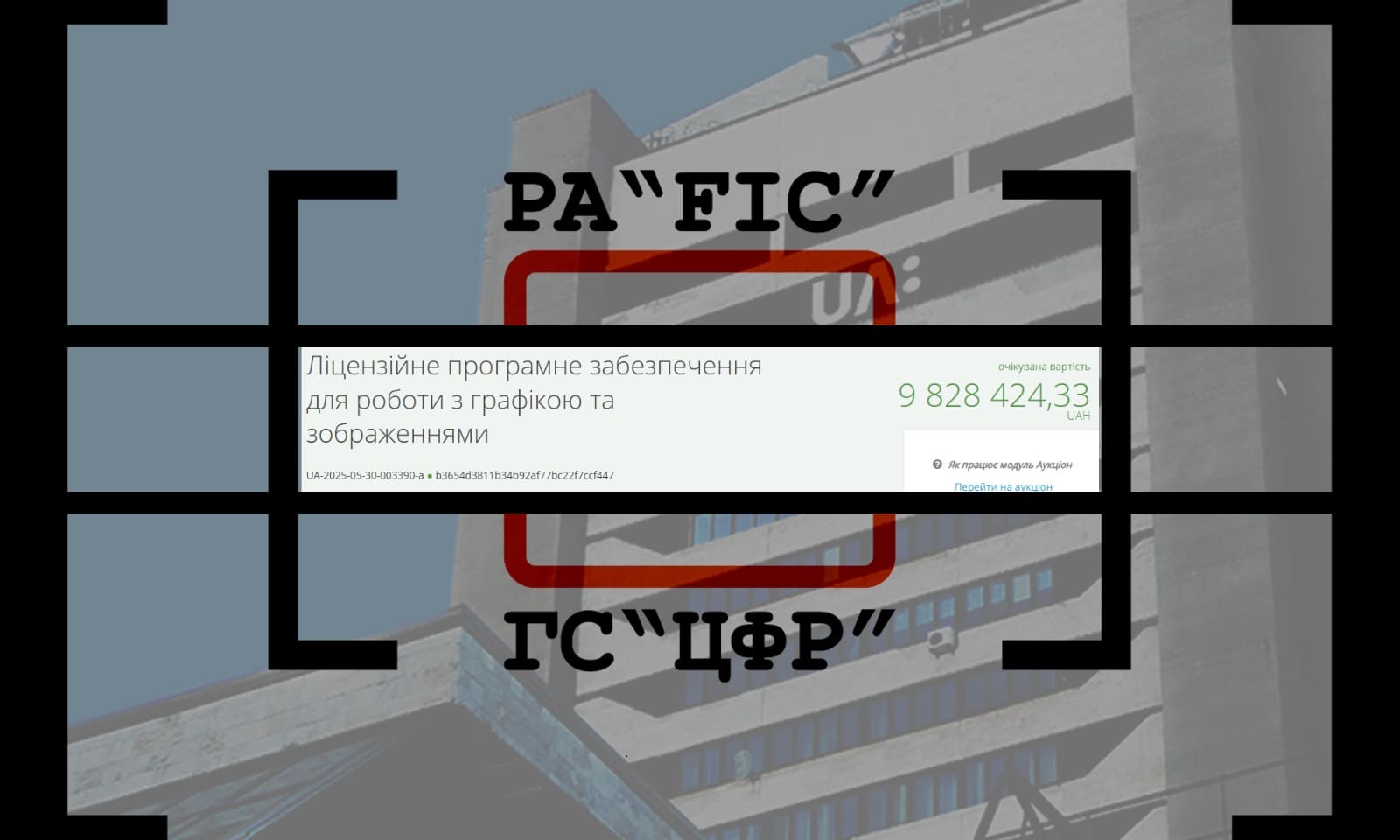 9 червня АКЦІОНЕРНЕ ТОВАРИСТВО “НАЦІОНАЛЬНА СУСПІЛЬНА ТЕЛЕРАДІОКОМПАНІЯ УКРАЇНИ” провело закупівлю на ліцензійне програмне забезпечення для роботи з графікою та зображеннями. Очікувана вартість закупівлі склала 9 828 424,33 гривні (державний бюджет).