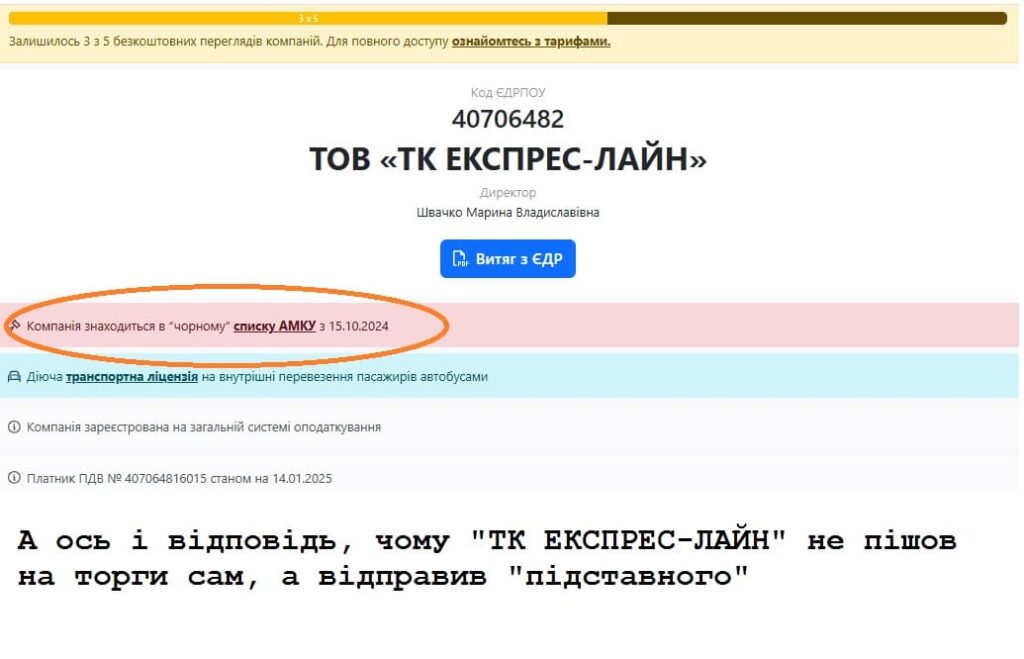 Але з ТОВом сталась одна халепа – він не може ходити на торги. З 15 жовтня 2024 року ця компанія знаходиться в чорному списку Антимонопольного комітету.