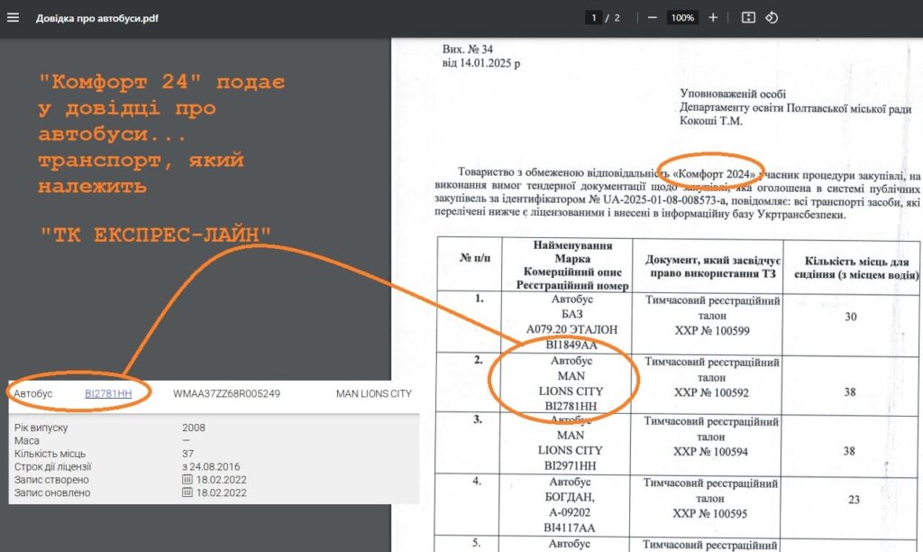 Тому, нас зовсім не здивувало, що знаходимо транспорт “забанених” ТОВок в поданій тендерній документації нашого новоствореного фаворита. І транспорт, і співробітників.