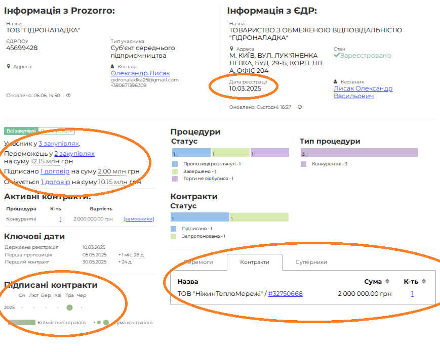 ТОВ зареєстровано 10 березня 2025 року. У травні отримав свій перший контракт з ТОВ “НіжинТеплоМережі” (2 мільйони гривень).