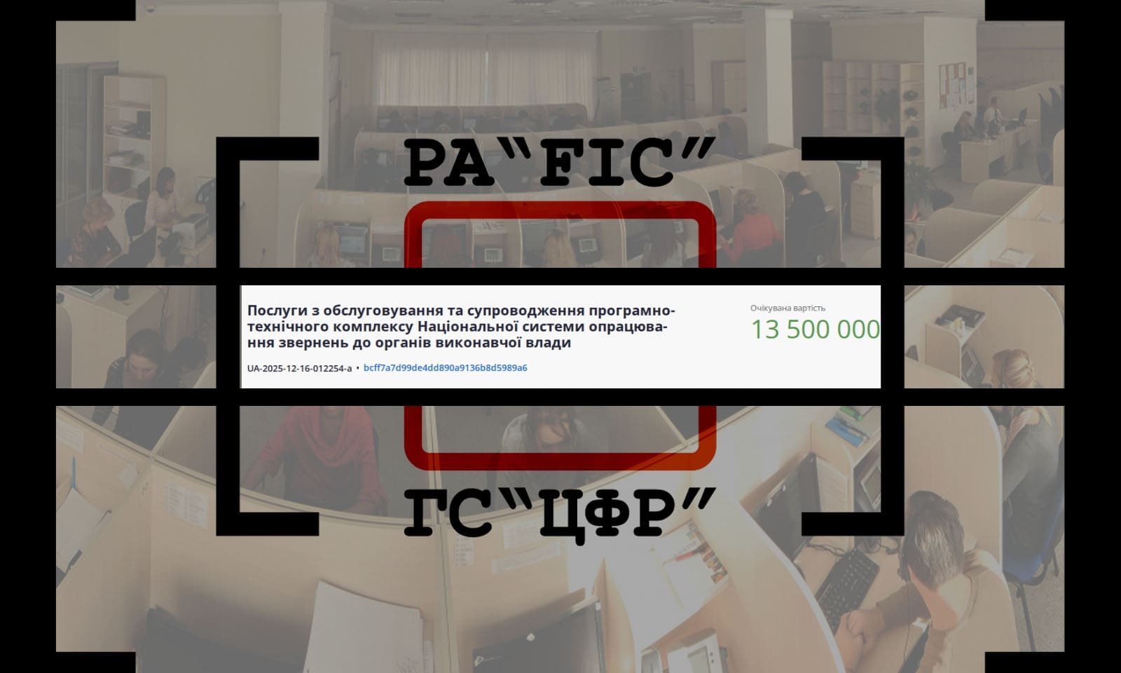 24 грудня Державна установа “Урядовий контактний центр” провела закупівлю на послуги з обслуговування та супроводження програмно-технічного комплексу Національної системи опрацювання звернень до органів виконавчої влади.