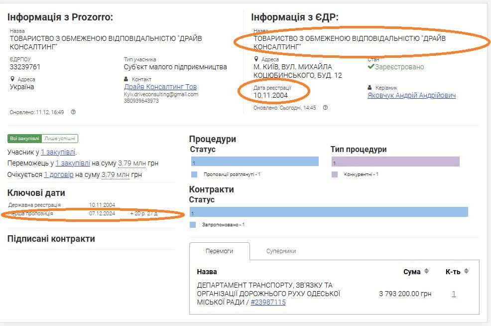 ТОВ заснований рівно за один місяць до проведення аукціону, 10 листопада 2024 року. Цей контракт стане його першим контрактом.