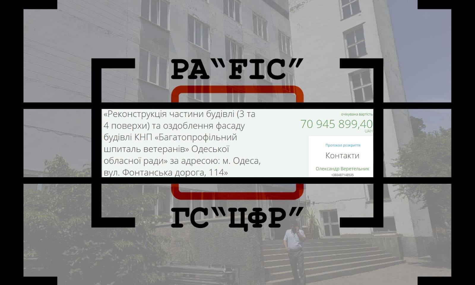 1 липня ДЕПАРТАМЕНТ КАПІТАЛЬНОГО БУДІВНИЦТВА ТА ДОРОЖНЬОГО ГОСПОДАРСТВА ОДЕСЬКОЇ ОБЛАСНОЇ ДЕРЖАВНОЇ АДМІНІСТРАЦІЇ провів закупівлю на реконструкцію частини будівлі (3 та 4 поверхи) та оздоблення фасаду будівлі КНП “Багатопрофільний шпиталь ветеранів” Одеської обласної ради.