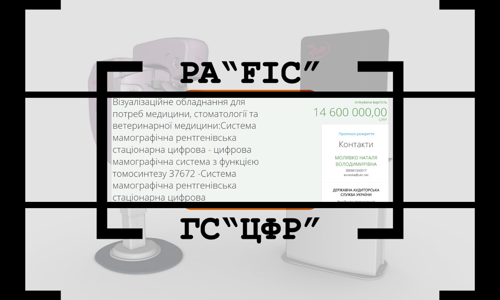 25 січня КОМУНАЛЬНЕ НЕКОМЕРЦІЙНЕ ПІДПРИЄМСТВО “МІСЬКА КЛІНІЧНА ЛІКАРНЯ №1” ОДЕСЬКОЇ МІСЬКОЇ РАДИ провело закупівлю на систему мамографічну рентгенівську стаціонарну цифрову. Очікувана вартість закупівлі склала 14 600 000 гривень (місцевий бюджет).
