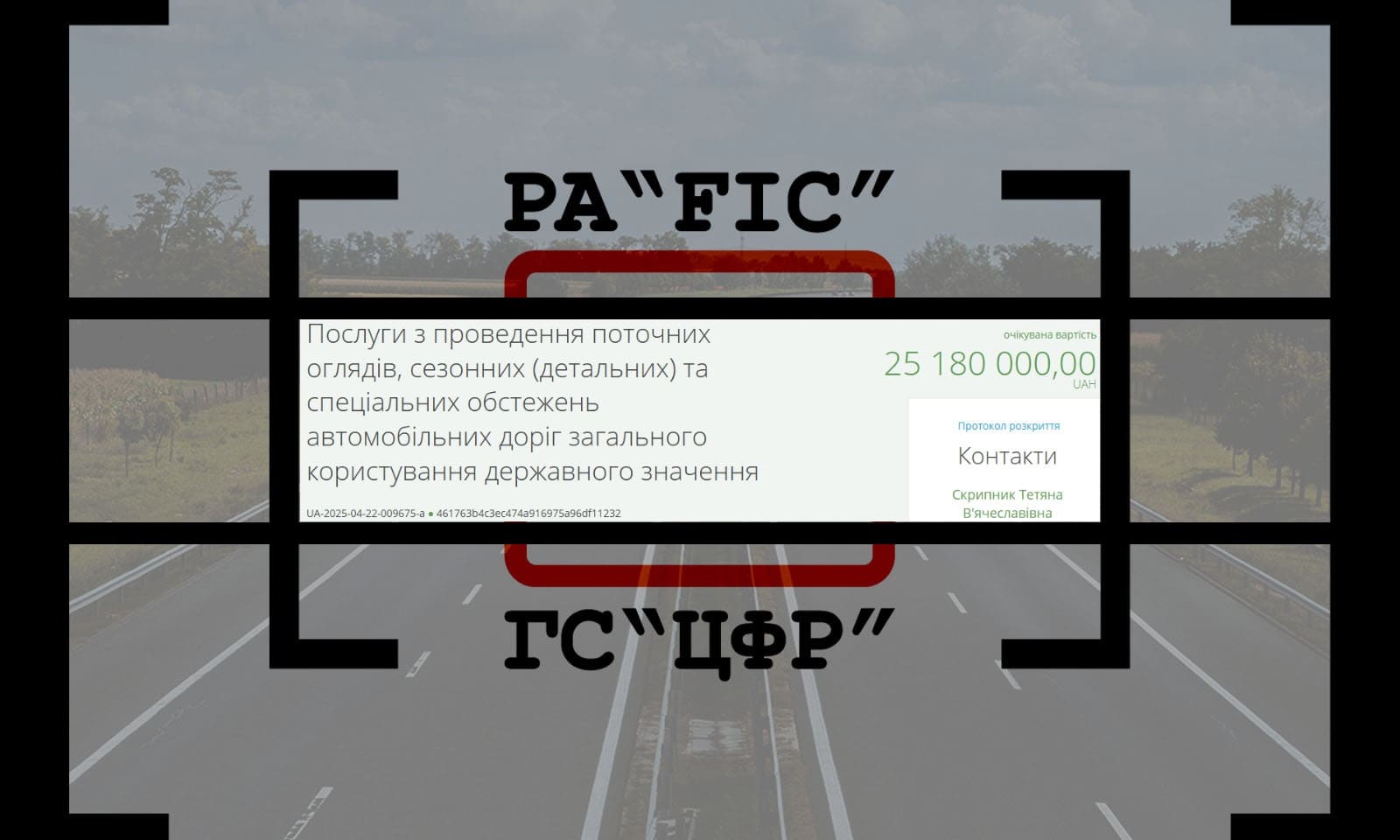 30 квітня ДЕРЖАВНЕ АГЕНТСТВО ВІДНОВЛЕННЯ ТА РОЗВИТКУ ІНФРАСТРУКТУРИ УКРАЇНИ провело торги на послуги з проведення поточних оглядів, сезонних (детальних) та спеціальних обстежень автомобільних доріг загального користування державного значення. Очікувана вартість закупівлі склала 25 180 000 гривень (державний бюджет).