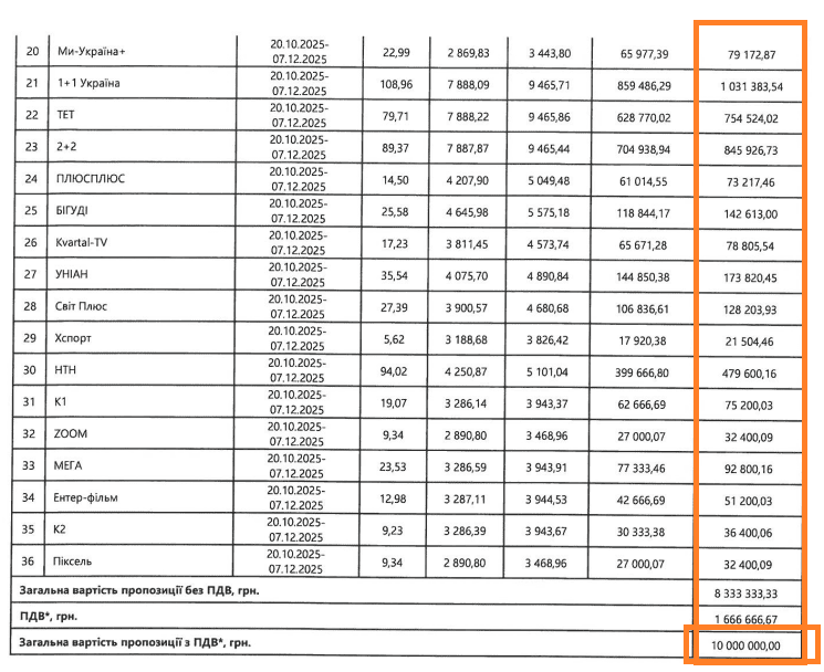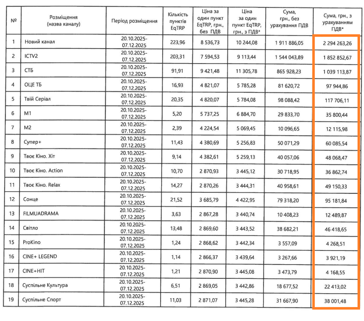 8 жовтня АТ “Ощадбанк” провело закупівлю на розміщення реклами “Великий, але близький кожному” на телебаченні.