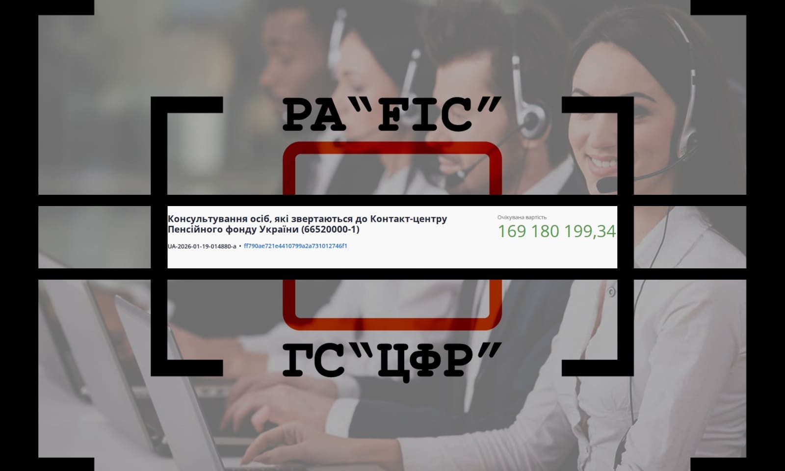 19 січня Пенсійний фонд України провів закупівлю без використання електронної системи на послуги консультування осіб, які звертаються до Контакт-центру Пенсійного фонду України.